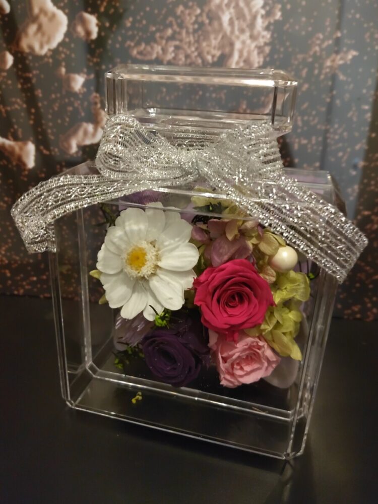 | プリザーブドフラワーとは・・・生花に特殊加工を施してありますので、長時間美しい状態で飾っていただけます。プレゼントに最適です。 |