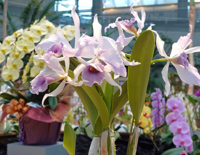 咲き誇るカトレヤなど愛好家の育てた野生種や交配種など多数展示します。