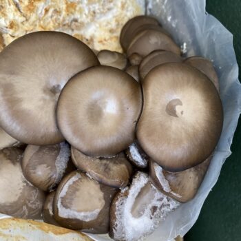 きのこ菌床とは、培地(きのこを育てるための土)に種菌(基となる菌)を植えて菌を増やしたものです。