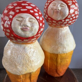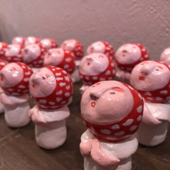 ー販売ー 粘土、張子、イラストなどでベニテングタケとお地蔵さんを組み合わせた、きのこ地蔵さんを制作。郷土玩具のような、きのこの置物も制作しています。きのこ地蔵さんのほほ笑みを胞子のように広げていきたいです。 |
