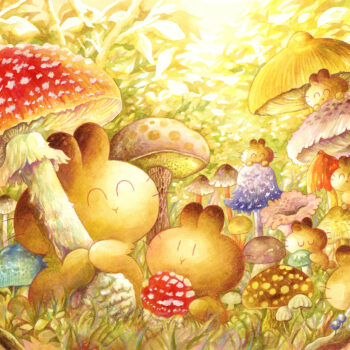 ー販売ー おもに透明水彩絵の具と水彩色鉛筆を使って、やわらかな自然の風景の中で生きているきのこのイラストを描いています。気軽に飾れる作品のポストカードや クリアファイル、マグカップなどを販売します。