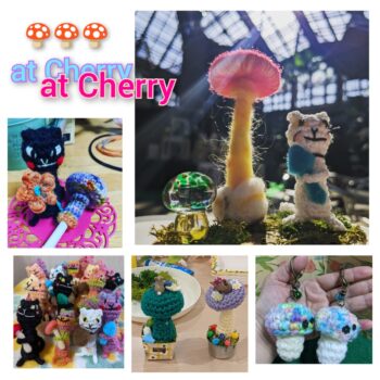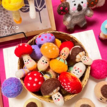 ー販売・ワークショップー 高槻に実店舗のあるオトナゲナイオトナの秘密基地ちくちくの手作りキノコ雑貨を並べます。 |