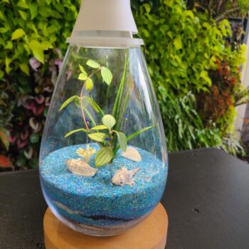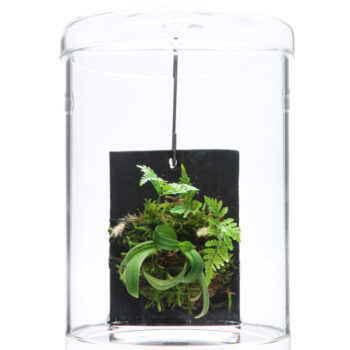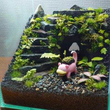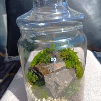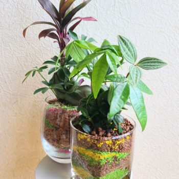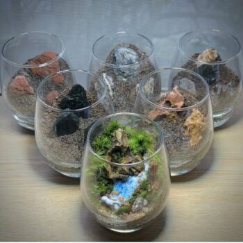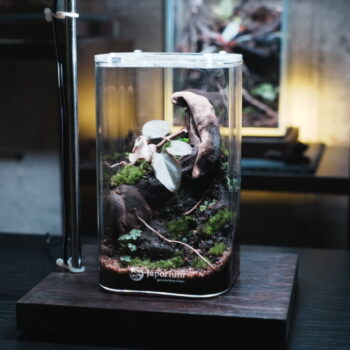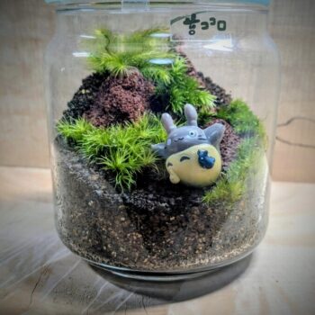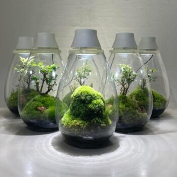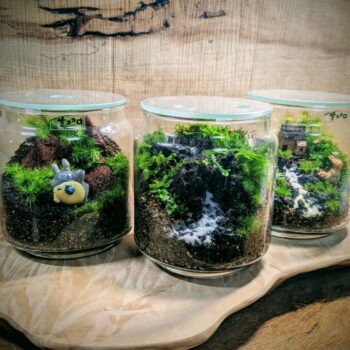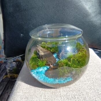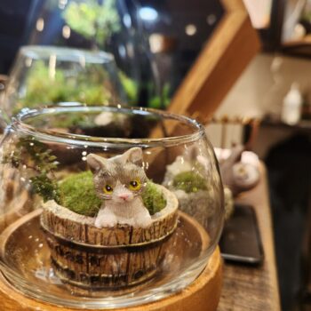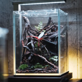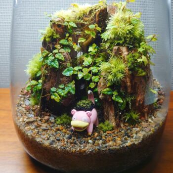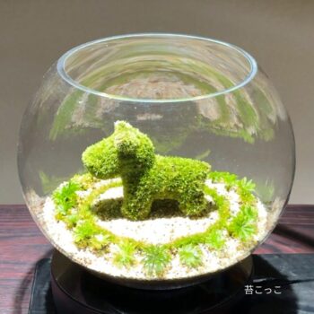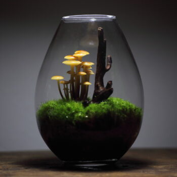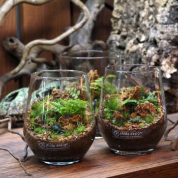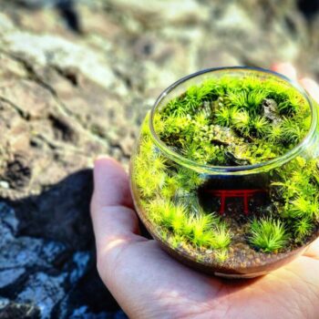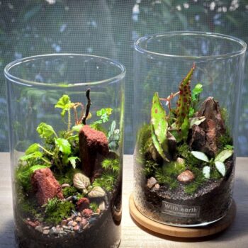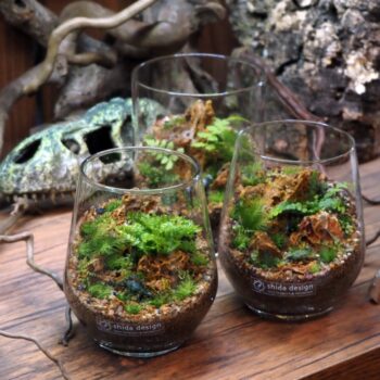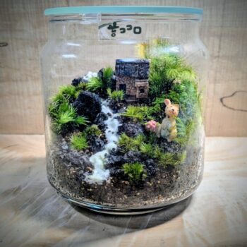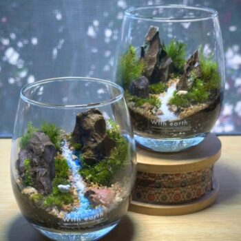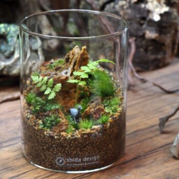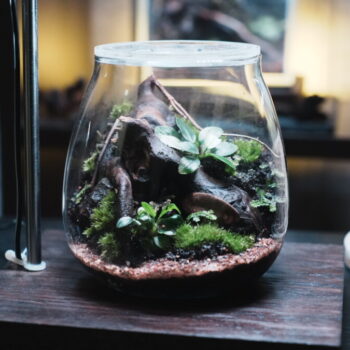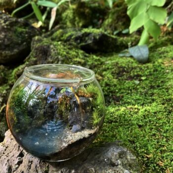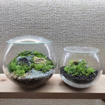 テラリウムとは、ガラス容器の中に植物などを配置し、自然の風景を再現して育てる方法です。