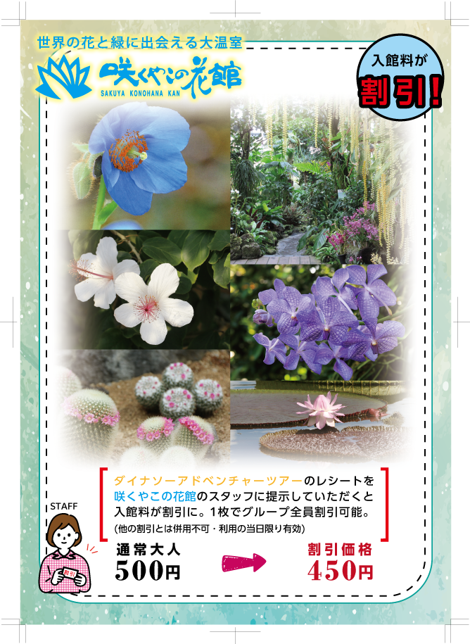※他割引との併用はできません。また入館後のご提示による払い戻しは致しかねます。ご了承ください。