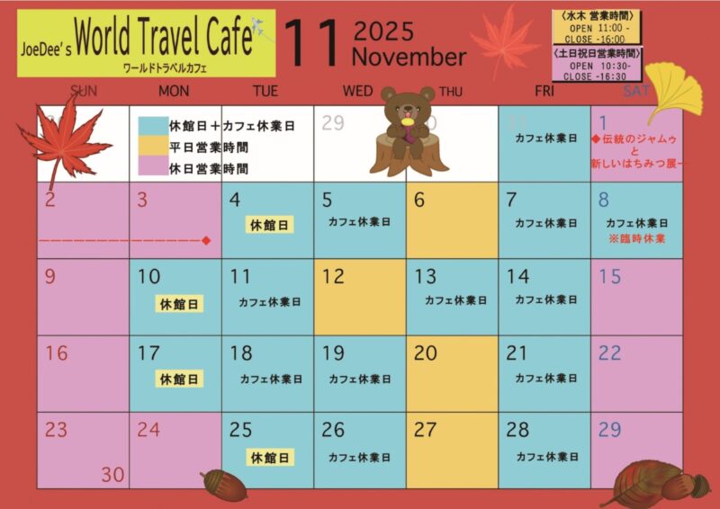 ワールドトラベルカフェ出店日と新メニューについて(11月)