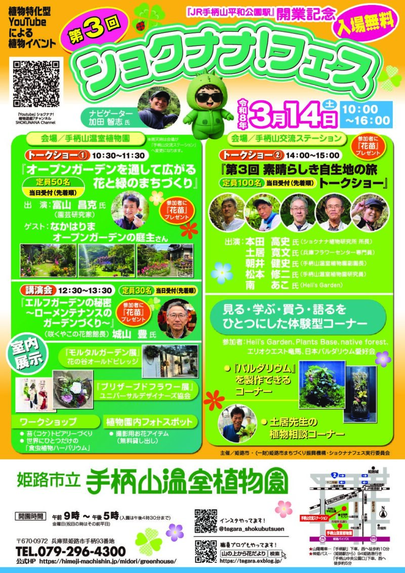 昨年は「草津市立水生植物公園みずの森」で開催されましたが、今年は「姫路市立手柄山温室植物園」「手柄山交流ステーション」で開催されます!