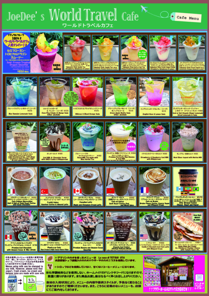 館内ワールドトラベルカフェでは、コーヒー・フルーツスムージー・フレッシュジュースをはじめ、季節やイベントに合わせたデザート&フードを取り揃えております!